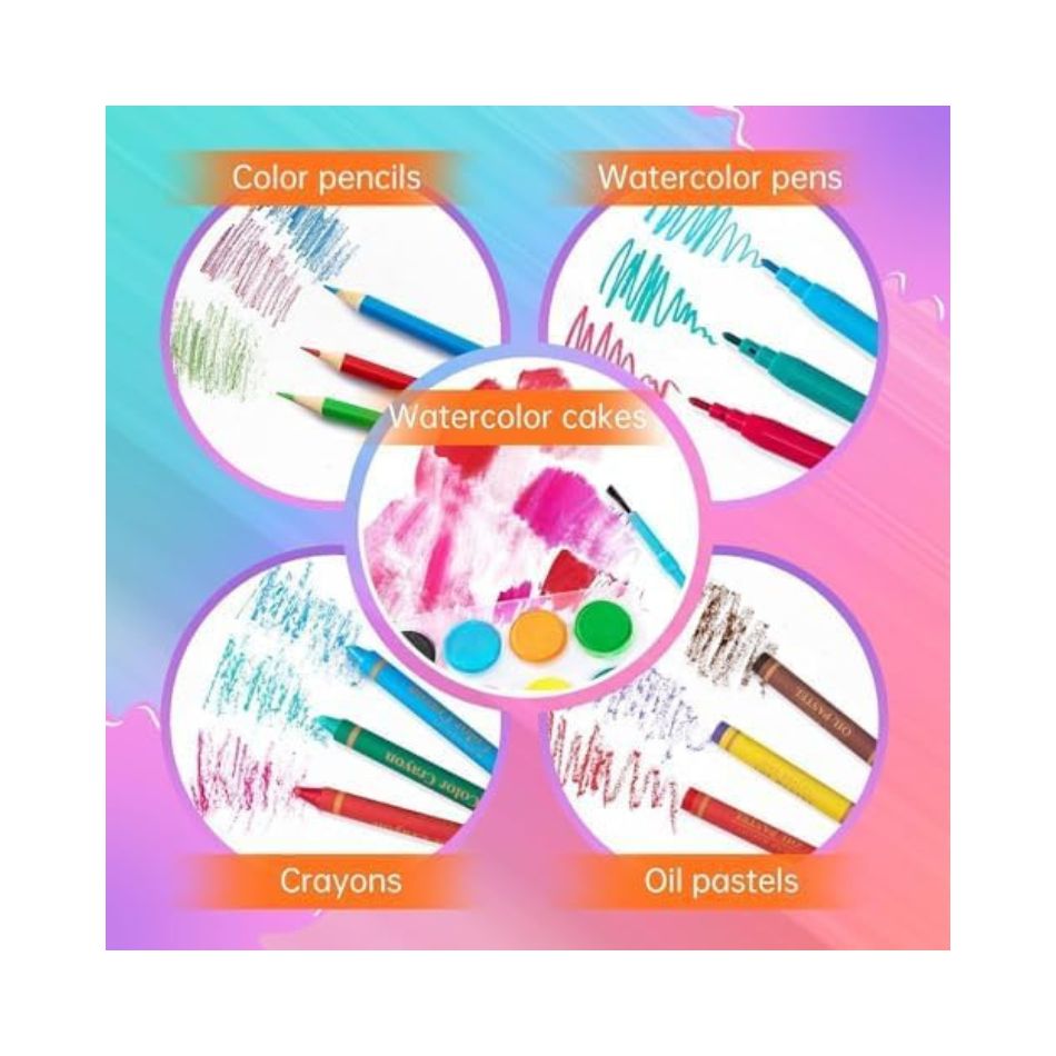 This 128 Pcs art set is perfect for budding artists of all ages. It includes a wide variety of art supplies, including colored pencils, crayons, markers, and paints. The set also comes with a sturdy case for easy storage and portability. The colored pencils are made with high-quality pigments that produce vibrant colors. The crayons are also non-toxic and safe for children to use. The markers are water-based and easy to blend. The paints are also non-toxic and come in a variety of colors. The set also includes a number of other art supplies, such as a pencil sharpener, a ruler, and a pair of scissors. The case is made of durable plastic and has a handle for easy carrying. This 128-piece art set is a great way to encourage creativity and imagination in children. It is also a great gift for any occasion.