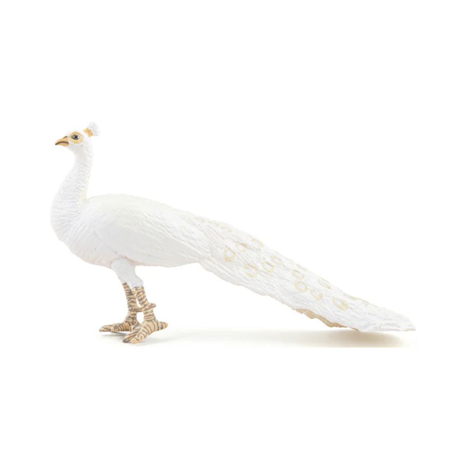 Interestingly, contrary to popular belief, the white peacock is not a different species, but a variation of the blue peacock. It shares the same behavior and the same powerful call that resonates at dusk.