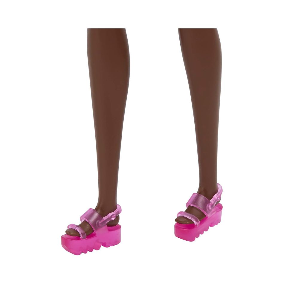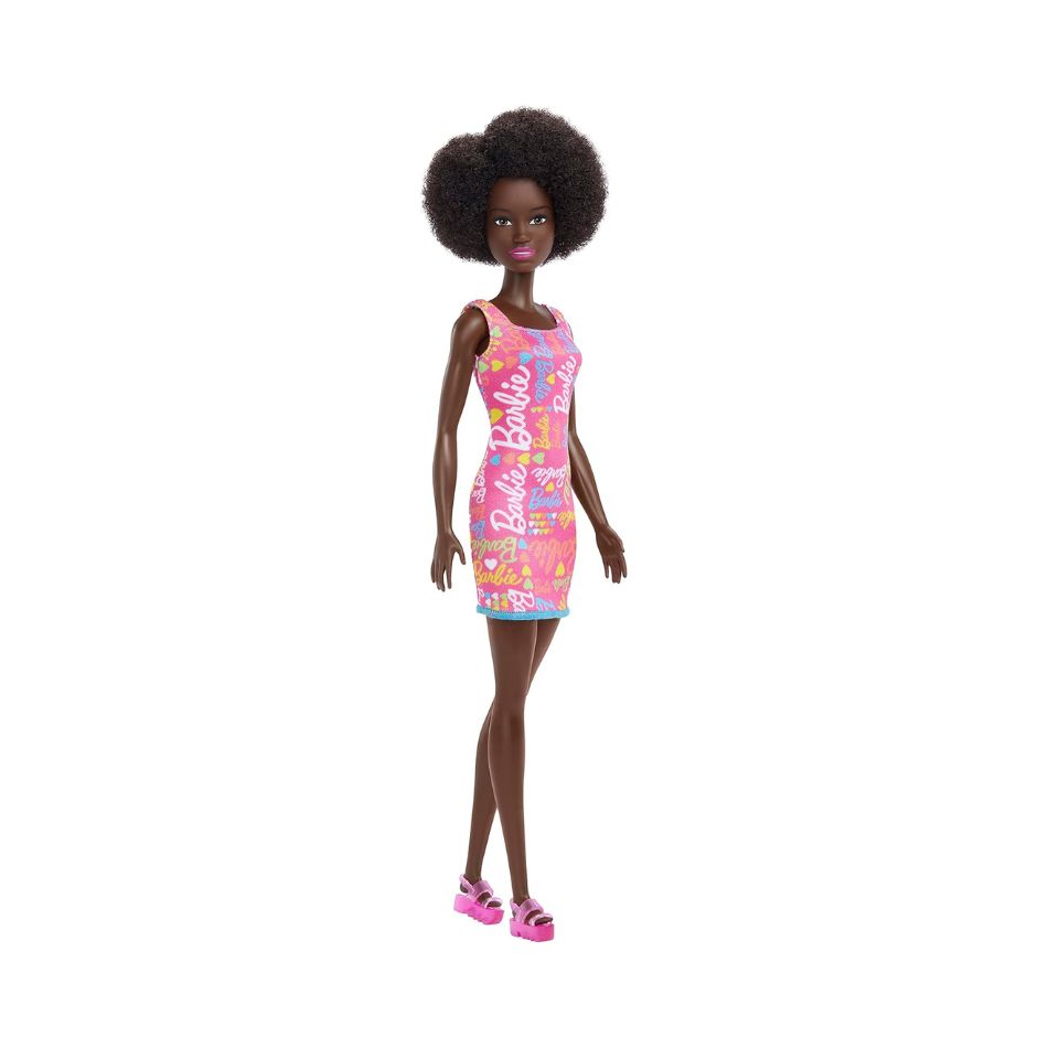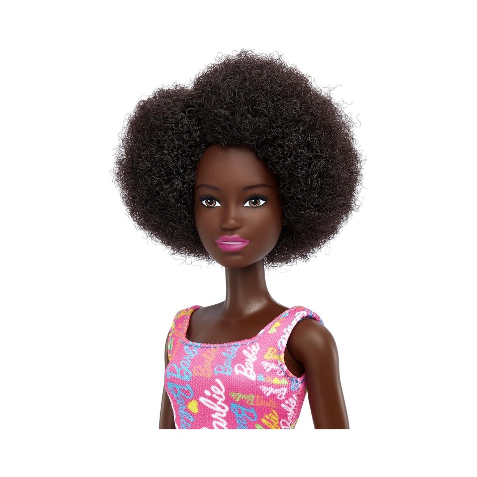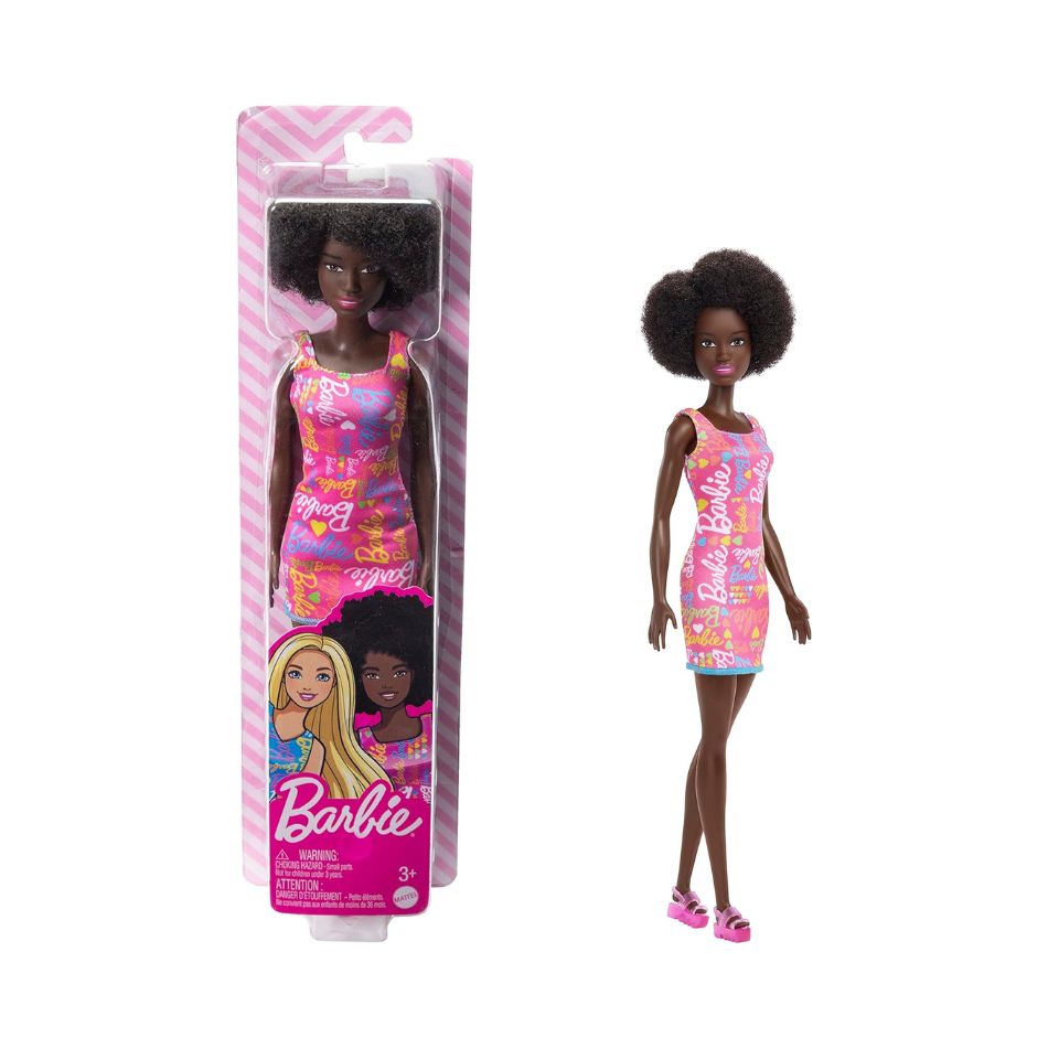 Add color and style to play with this unique Barbie doll! With impressive curly hair and a modern dress full of vibrant patterns, she inspires creative stories and endless hours of imaginative play.