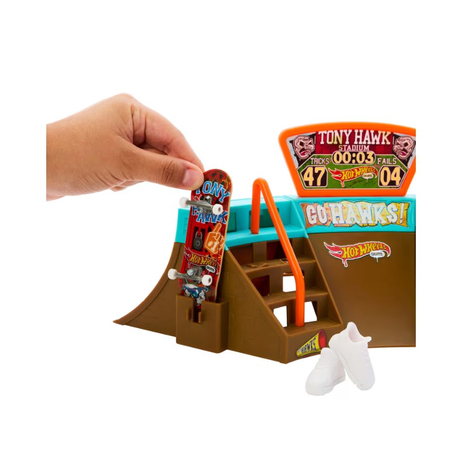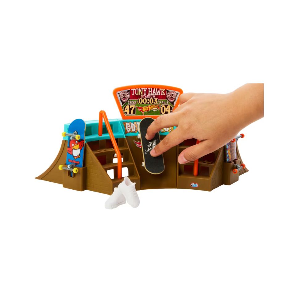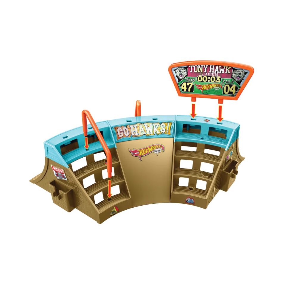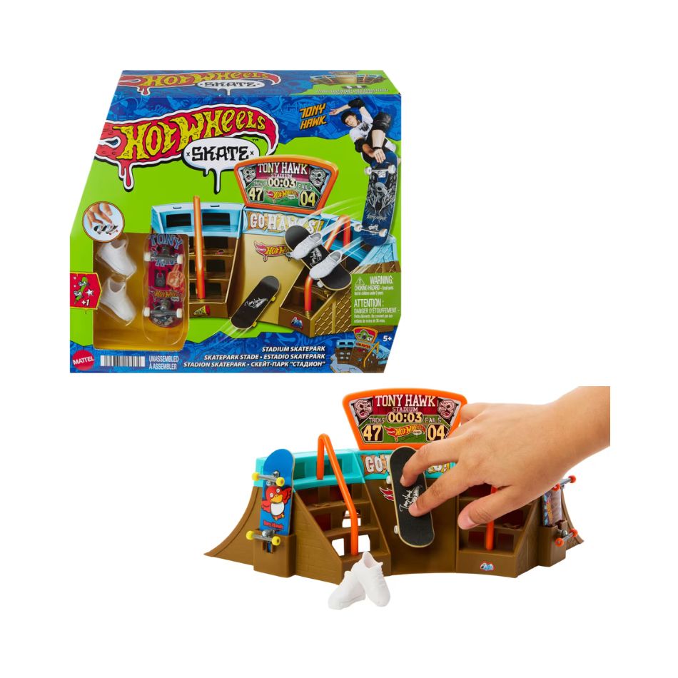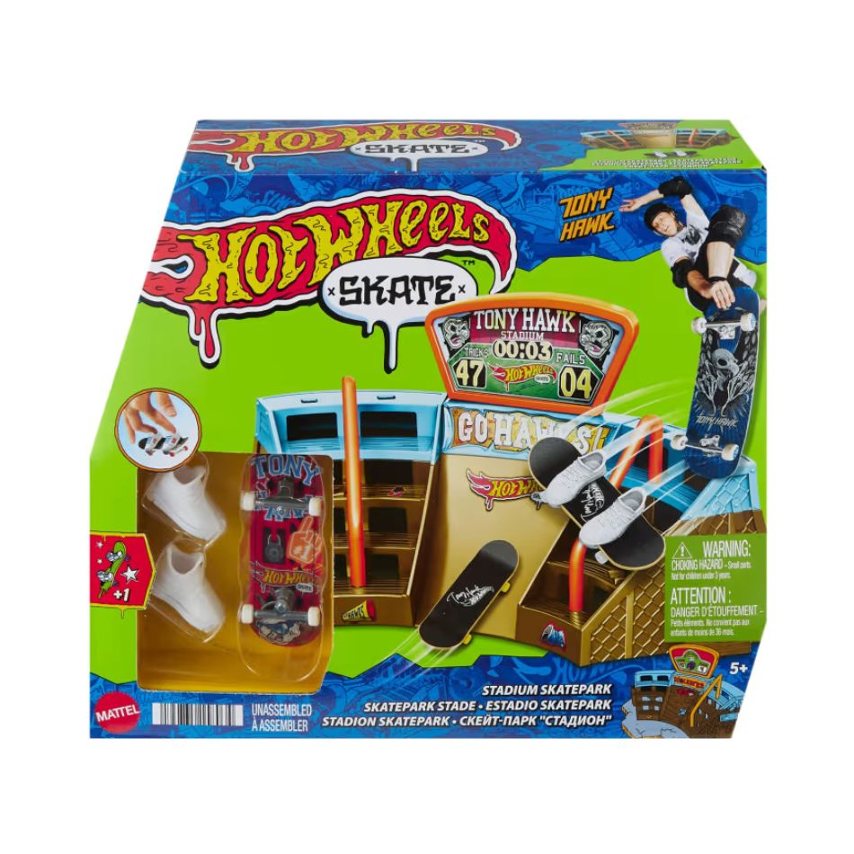 Discover the world of skateboarding with the impressive Hot Wheels Skate Tony Hawk Stadium Skatepark! An exciting playset created in collaboration with skate legend Tony Hawk, offering unique experiences of action and skill.