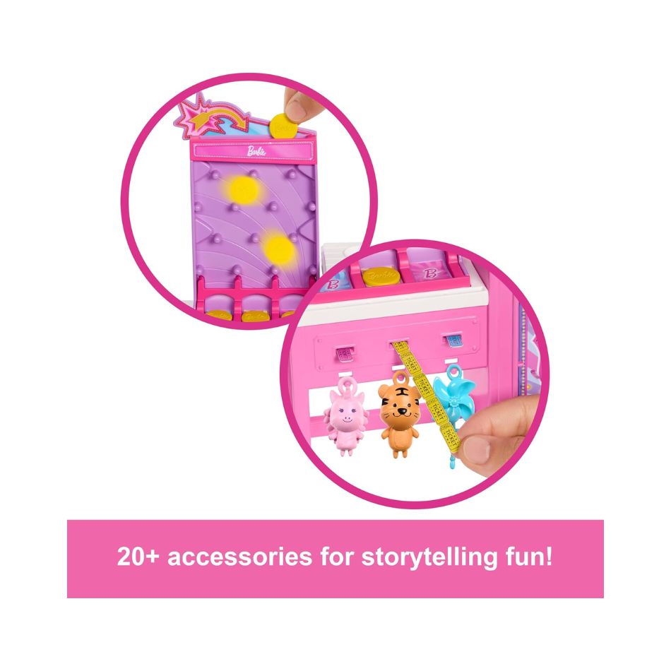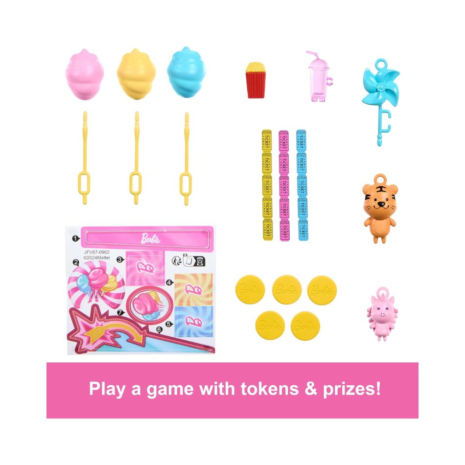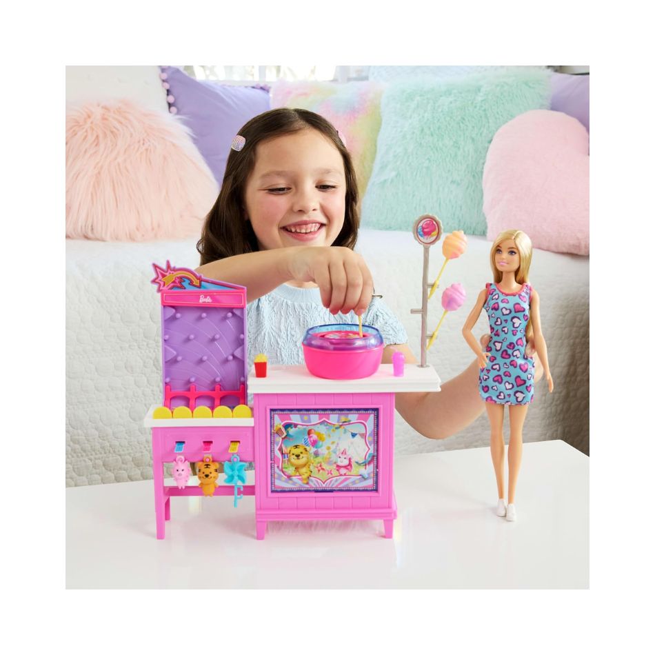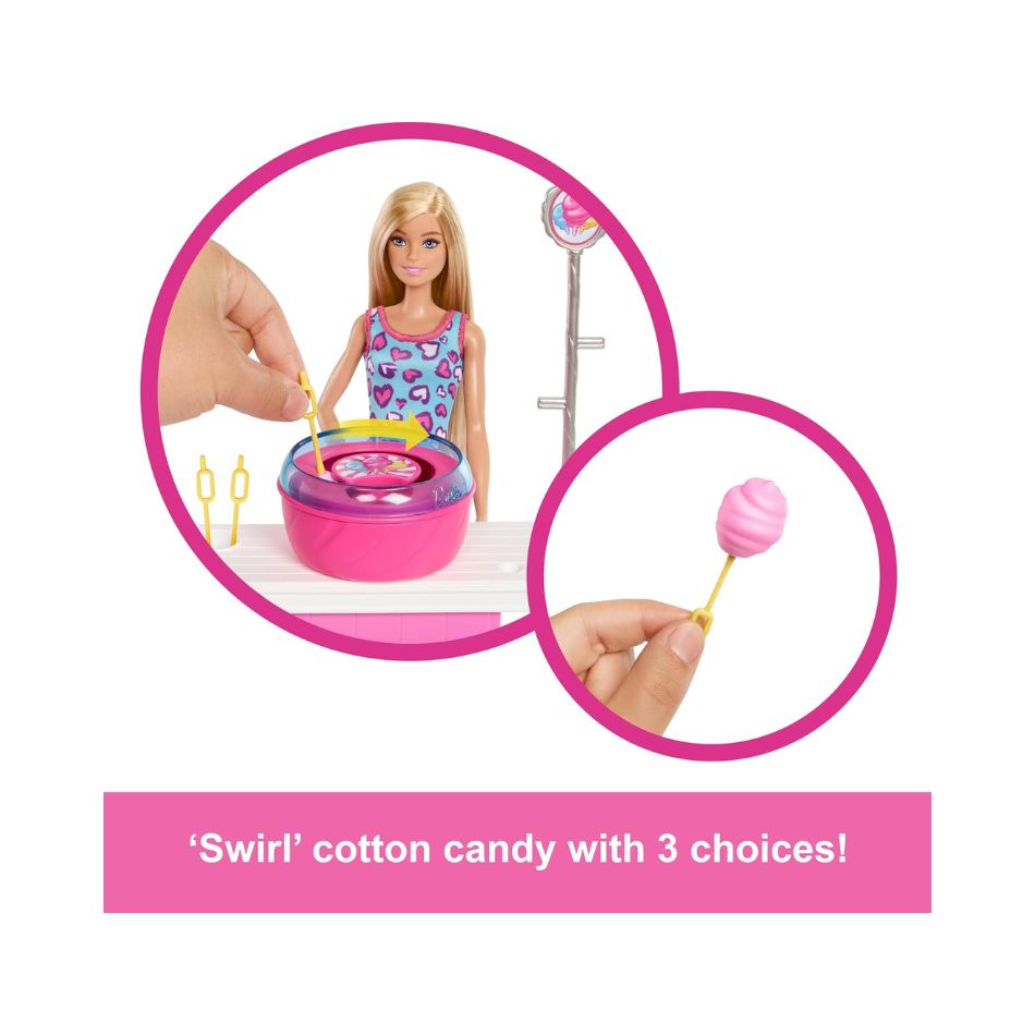 BRAND JFV67 BARBIE MYSTERIES: BEACH DETECTIVES MALIBU” DOLL & COTTON CANDY GAME BOOTH PLAYSET WITH 20 ACCESSORIES
