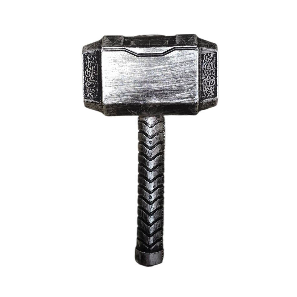 Get the look of a legendary hero with this impressive fantasy warrior hammer. With a sturdy metal-look head and decorative embossed designs on the sides, it is reminiscent of a mythical weapon from a world of gods and epic battles.