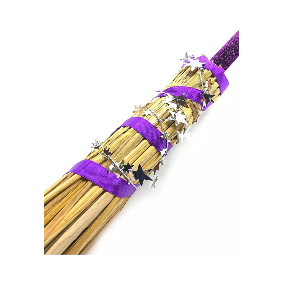 Add a touch of magic to your costume with this witch’s broom with glitter handle, perfect for carnival and Halloween looks. The combination of a natural look at the bottom with a shiny purple handle and decorative ribbons creates an impressive and playful effect.