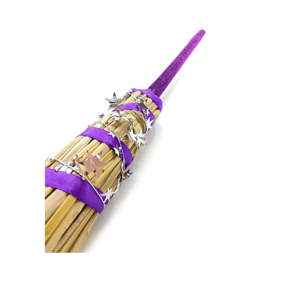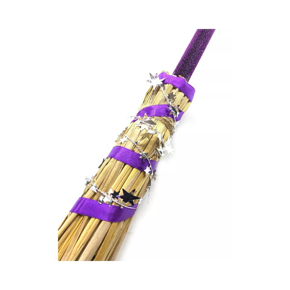 - Design: Traditional witch’s broom with decorative handle