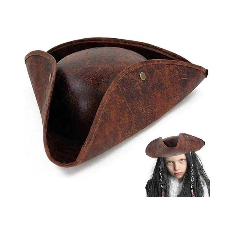 CARNIVAL HAT TRICORN LEATHER HAT – VINTAGE PIRATE STYLE JACK SPARROW 80714