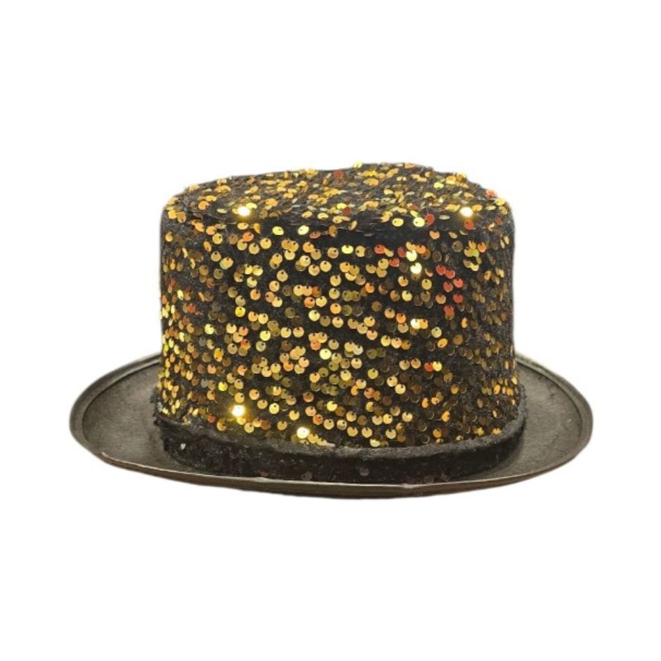 CARNIVAL TOP HAT WITH SEQUINS – BLACK / GOLD 80692