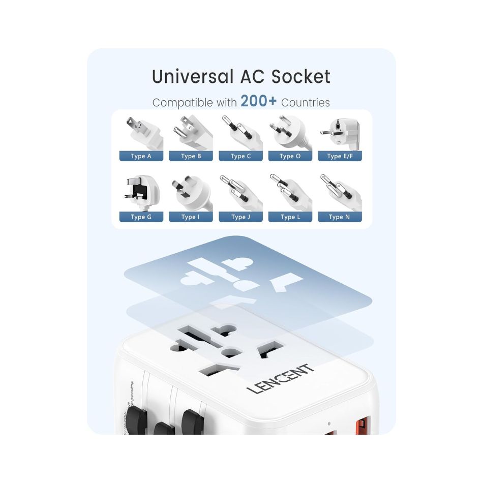 - 【AUTO-ID Technology for Intelligent Charging】 The LENCENT travel adapter with 2 USB ports & 1 Type C ports is capable of intelligently identifying connected devices and detecting and delivering optimum charging current, ensuring fast and safe charging.