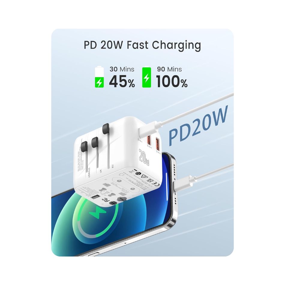 - 【PD 20W Fast Charging】 With smart charging technology, it delivers an optimized charge to USB devices according to your device’s needs. The single USB-C1 port (20W Max) can either power your iphone with full speed, Because it has the same power compared to the standard charger for the iphone, and there are more USB ports and AC