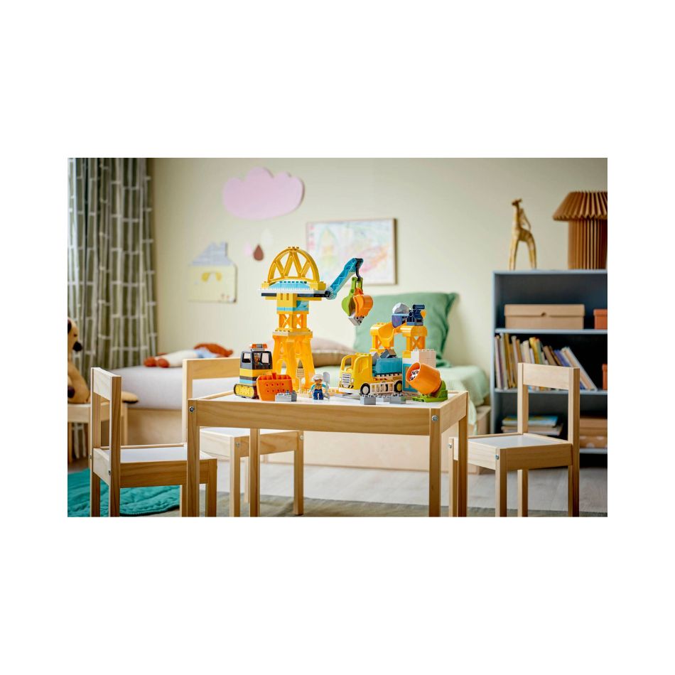 - 3 IN 1 LEGO® DUPLO® SET – Toddlers have endless ways to play as they build and rebuild to make a bridge the trucks can drive under, a loading station, crane with a moving arm and grabbing bucket