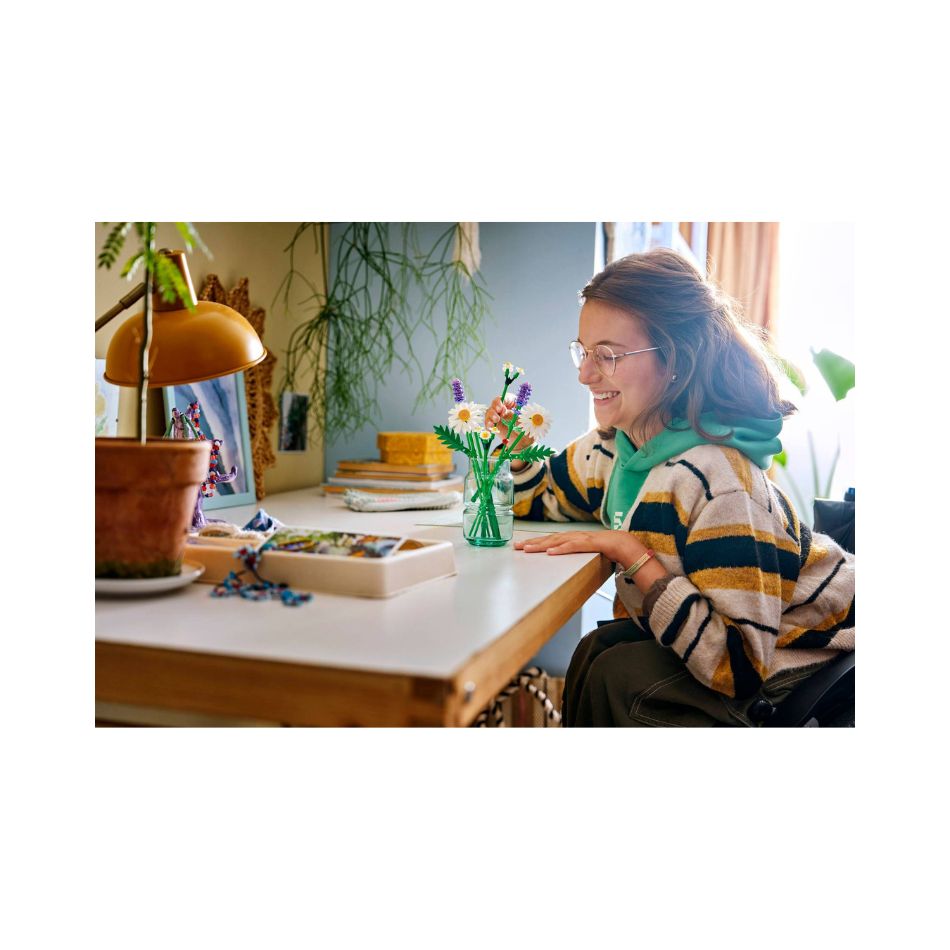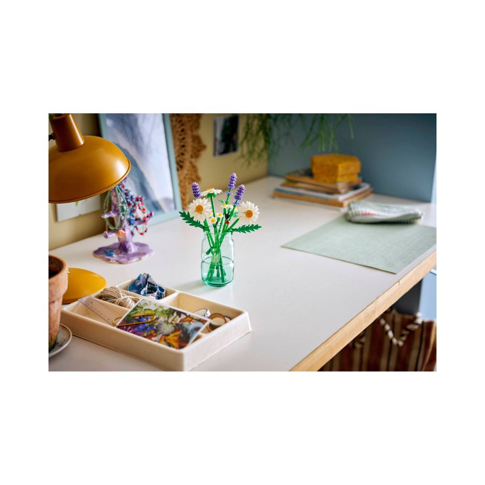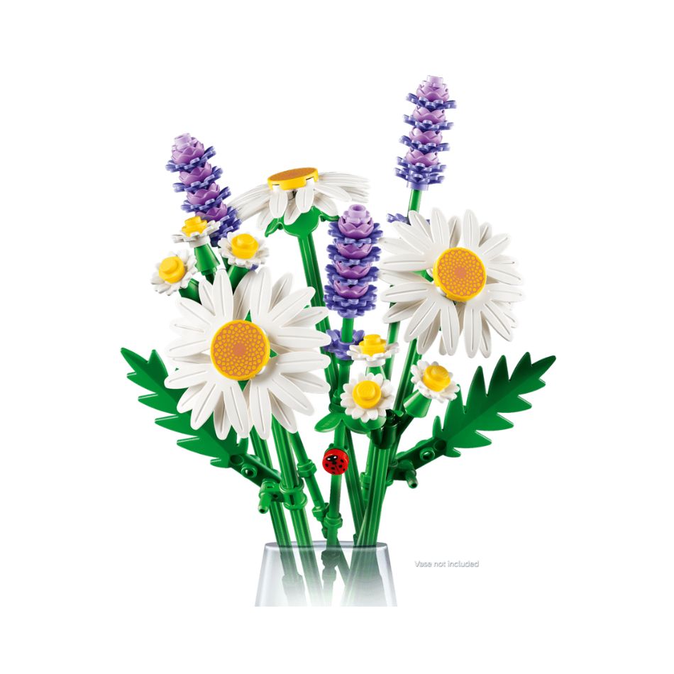 - LEGO® FLOWER BOUQUET – Budding florists will have fun building 3 large daisies, 2 stems of small daisies, 3 calming lavenders and vibrant green stems