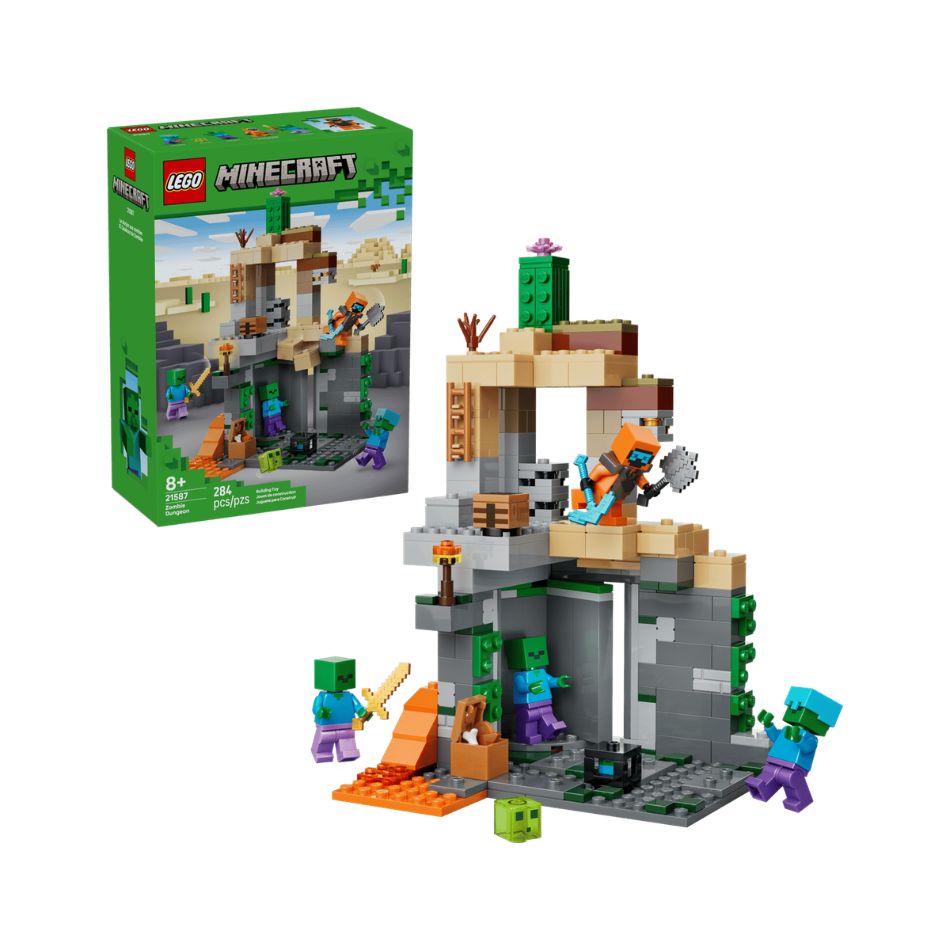 - MINECRAFT® ZOMBIE DUNGEON TOY – Enter the LEGO® Minecraft Zombie Dungeon (21587) if you dare, where boys and girls encounter action and gaming fun in a creative building set for kids ages 8 and up
