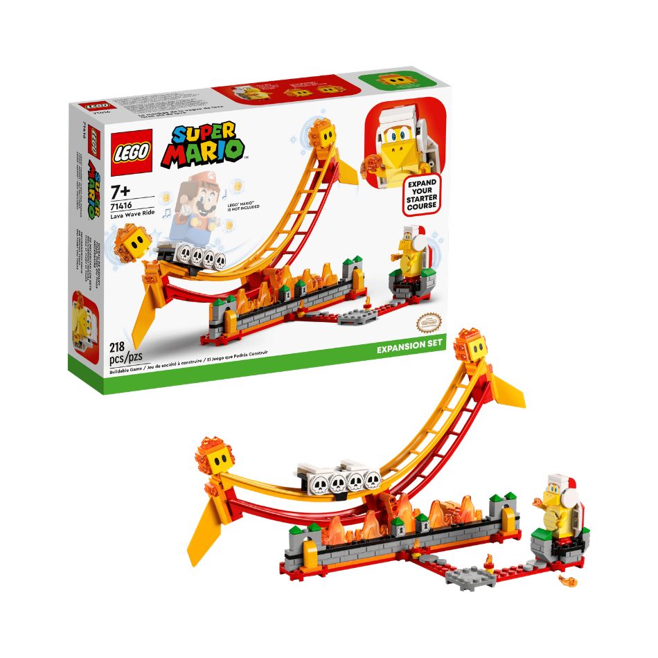 - Ride the lava wave (71416) – Kids can add a fun lava level to their LEGO® Super Mario™ world with this Expansion Set, featuring an oscillating lava wave and Super Mario™ enemy characters