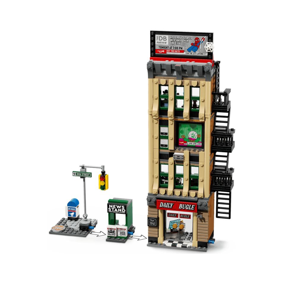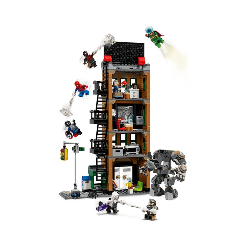- DAILY BUGLE BUILDING TOY – Explore Spider-Man vs. Mysterio: The Daily Bugle (76342), a 4-level building packed to the rooftop with LEGO® ǀ Marvel mini figures and Super Hero action