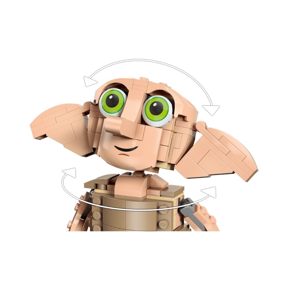 - Posable head, ears, arms and fingers – Create different looks and adjust Dobby’s fingers so he can hold the brick-built accessories