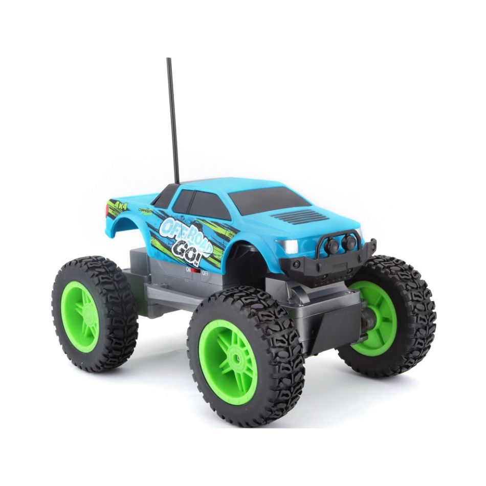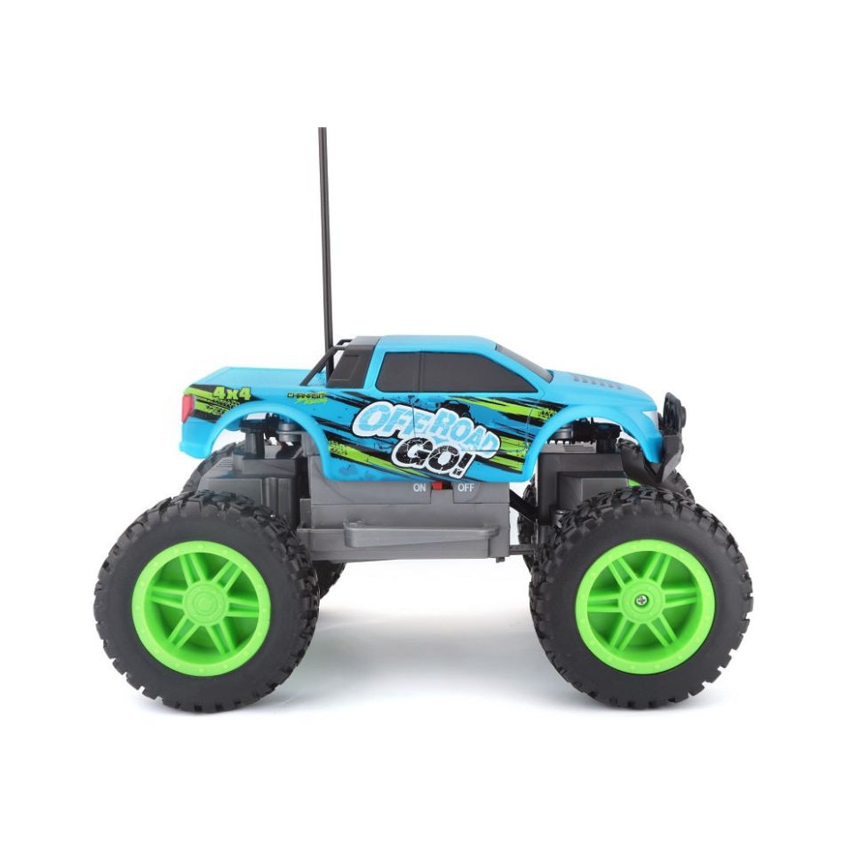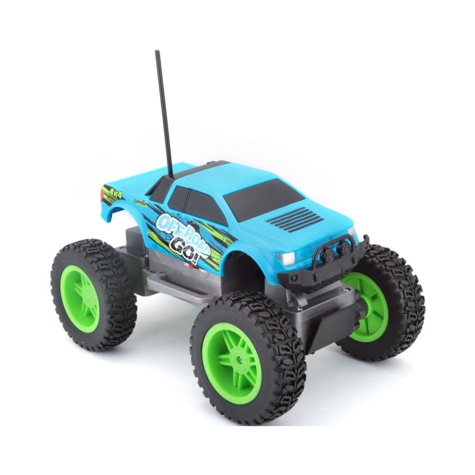 The Maisto Tech Off Road Go! is a 1:24 scale remote-controlled off-road car, perfect for little fans of speed and adventure! With impressively large tires, a sturdy chassis and cool colors (blue or yellow), it is ready to race on any surface.