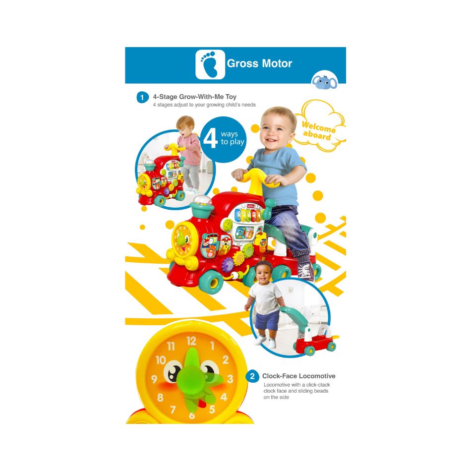 • Locomotive with a click-clack clock face and sliding beads on the side.
