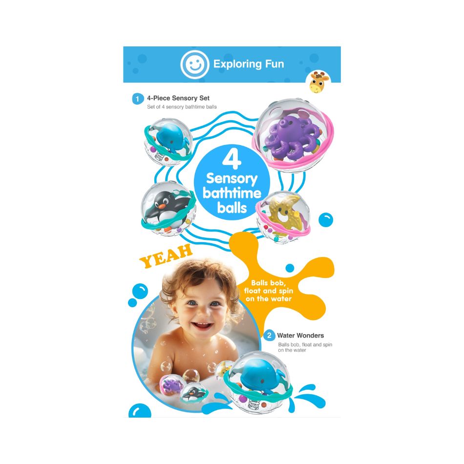 - Set of 4 sensory bathtime balls